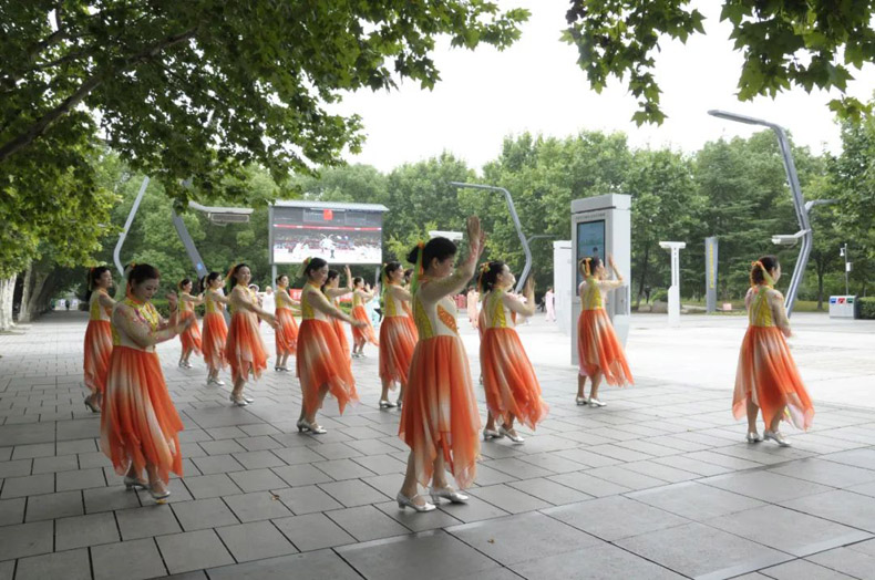 新區公園新區公園是蘇州市最大的開放式公園,平日里匯集了4-6支廣場舞團隊,廣場舞活動人數達五六百人。由于廣場舞活動對音樂的特殊需求,當多支舞隊同時進行活動時,容易出現音樂聲互竄互相干擾的情況,大大降低了健身娛樂的體驗。新區公園場地雖大,但廣場舞團隊也多,一時間出現了健身場地“供不應求”的矛盾,廣場舞隊間大打出手搶奪場地、調大彼此音箱音量互相轟炸的情況時有發生,甚至多次驚動該轄區派出所民警出警調解。
