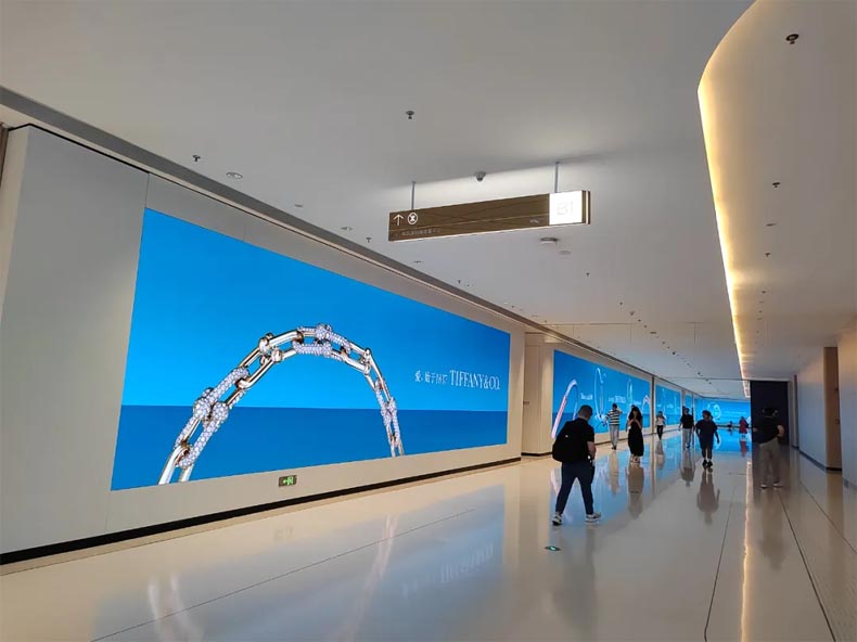 在深圳灣萬象城這一高端商業綜合體的通道上,一塊塊LED顯示屏已成為城市視覺新地標。不僅以其震撼的視覺效果吸引著過往人群的目光,更憑借其卓越的技術性能成為商業廣告屏領域的典范之作。
