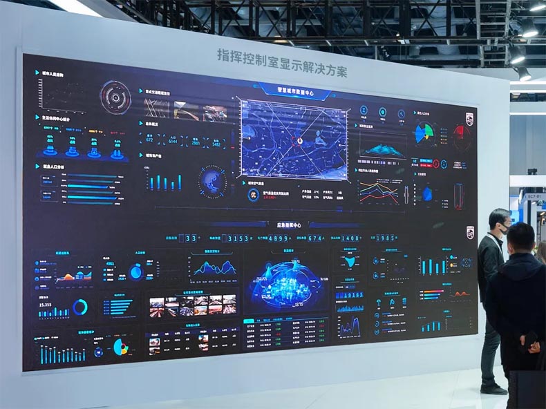 以P0.9微間距打造的指揮中心大屏,采用倒裝COB無線封裝技術,結合共陰節能驅動。搭載自研AI智能仿生處理器,輕松實現4K/8K無損畫質顯示。支持海量信息數據及多路監控視頻同屏展現,打通“數據收集-處理分析-快速傳輸-屏幕可視化” 鏈路,滿足事前、事中、事后不同場景下應急指揮的需求。真正做到統一平臺、統一通信、統一部署、統一指揮、統一調度。實現多資源共享,全方位服務,為智慧城市建設裝上“智慧大腦”。