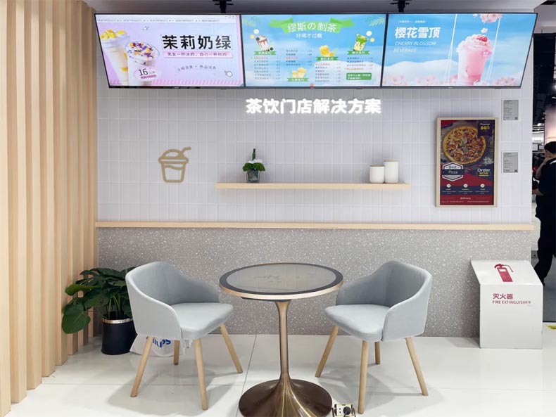 隨著消費升級需求提升,飲品店不僅是消費場所,更成為場景體驗的載體。以超窄邊框的數字標牌2257Q系列打造三聯屏云拼接解決方案,搭載CMS信息發布系統,提升茶飲門店運營效率。同時以700nits高亮顯示,輕松適應強光環境。彩色墨水屏實現長時間靜態無功耗顯示,大大降低門店運營成本。立式桌面圓形屏一體機,支持觸控交互,將傳統餐桌升級為大屏娛樂裝置,讓顧客在等待和消費時享受更多樂趣。