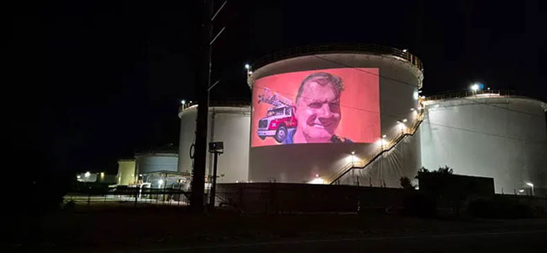 西澳大利亞奎那那的夜幕落下,Patterson 路旁的油罐會準時蘇醒——Pro AV Solutions 公司用科視 Griffyn 4K35-RGB 純激光投影機,在 24 米長、15 米高的油罐表面上鋪展動態畫卷。作為澳大利亞首個工業設施投影映射項目,這場“鋼鐵與光影的對話”正重新定義城市公共藝術的邊界。