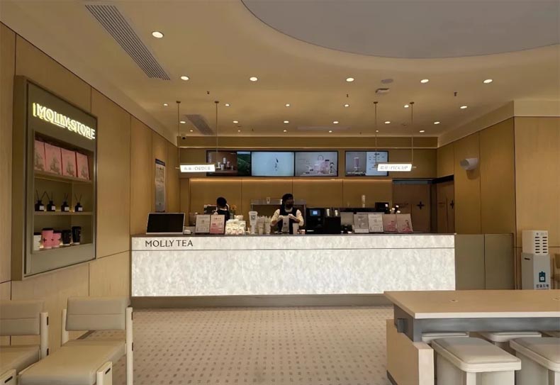 在茉莉奶白的門店中,TCL數(shù)字標(biāo)牌展現(xiàn)出了其卓越的場景適應(yīng)能力。針對茶飲空間特有的光線條件,特別選用了700nits高亮度IPS面板,確保在正午陽光直射或夜晚燈光交織的復(fù)雜環(huán)境下,飲品的視覺效果依然誘人——無論是奶茶的細(xì)膩分層,還是水果切面的生動紋理,都能在消費(fèi)者眼前清晰呈現(xiàn)。而創(chuàng)新的超窄邊框多聯(lián)屏設(shè)計(jì),則通過動態(tài)視頻與靜態(tài)海報(bào)的巧妙結(jié)合,營造出強(qiáng)烈的視覺沖擊力,有效吸引了顧客的注意力,延長了他們在店內(nèi)的停留時間。