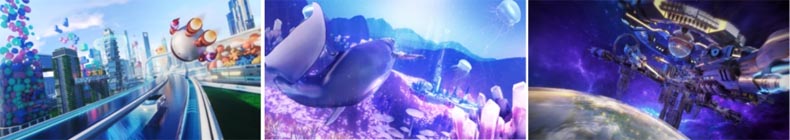 項目精心打造了獨一無二的“未來城市+星辰大海”原創ip,構建三大核心主題數字場景。游客不再僅僅是旁觀者,而是成為穿梭于炫酷科技“城境”(未來上海數字孿生)、浩瀚無垠“云境”(太空探索)、神秘唯美“海境”(深海互動)的探險家。這些充滿想象力與未來感的場景,成為情感聯結與記憶點的核心載體,讓游客的驚奇感全程在線。