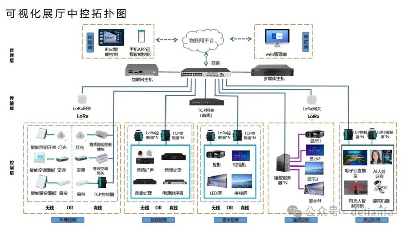 通過德云物聯展廳中控系統,輕松實現對展廳內聲光電設備的控制與管理(如燈光、空調、LED顯示屏等),提升用戶體驗感。
