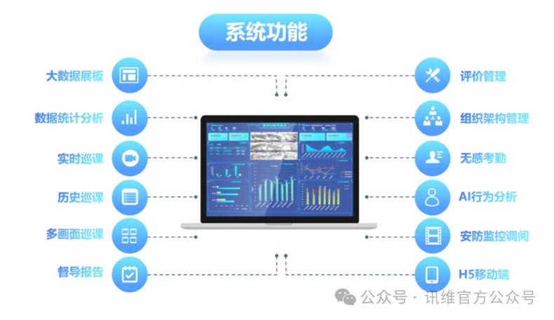 在科技飛速發展的今天,人工智能(AI)技術正以前所未有的速度滲透到社會的各個領域,教育領域也不例外。作為教育信息化的重要組成部分,訊維AI巡課督導系統憑借其獨特的功能和優勢,正在為教育教學帶來深刻的變革。本文將從系統的核心功能、技術優勢、應用場景及實踐效果等方面,全面解析訊維AI巡課督導系統如何重塑教育督導模式。