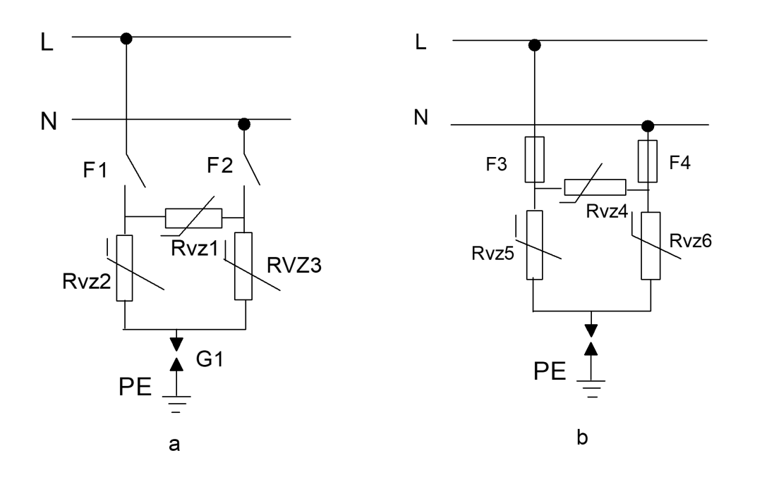 由于去掉了電感,變型電路1可以看作為兩個并聯式的防雷電路。當這兩級防雷電路做成兩個單獨的防雷器時,需要注意防雷器的安裝問題。