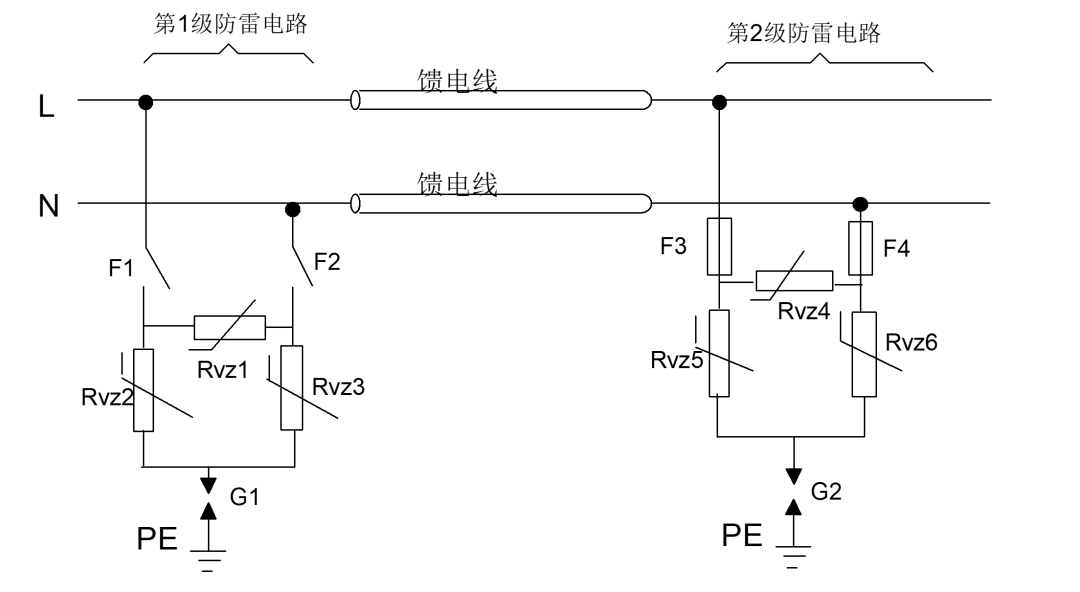 6、在整個饋電通路上存在多級防雷電路時,應注意各級防雷電路間有良好的配合關系,不應出現后級防雷電路遭到雷擊損壞而前級防雷電路完好的情況。