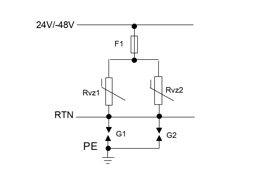 變型電路2是直流電源口防雷電路的簡化設計:保留防雷電路中的第1級防雷電路(注:這里選用兩個器件并聯的目的是降低殘壓和增大通流能力,在使用單個器件滿足要求的情況下可以只使用一個器件),去掉電感及第2級防雷電路。其它設計要點同直流電源口防雷電路。