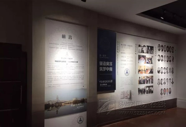 在校史館前廳區域的改造中,保持原有吊頂不變,對立柱和墻體進行美化處理。...