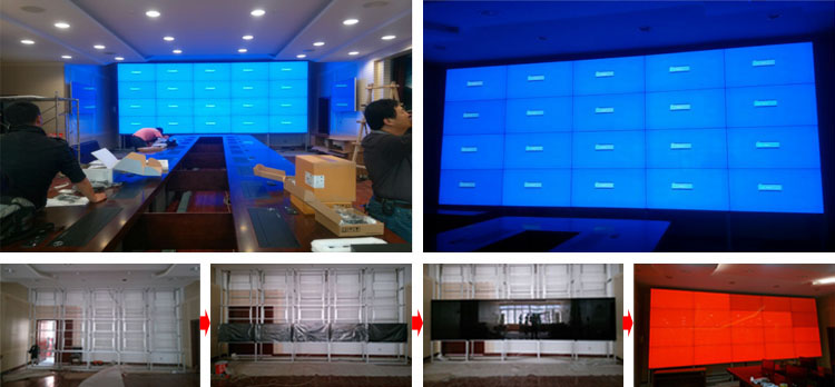 | 東方中原拼接屏 指揮中心大屏幕 選用機型和安裝環境 安裝數量 donview 55寸3.5mm拼縫 20臺 屏幕尺寸 長6077mm*2745mm 安裝時期 2015年3-4月 安裝方式 落地式 拼接處理 donview25進32出拼控 特點 . 亮度高 . 拼縫小 . 易維護 |