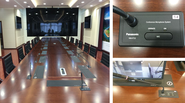 | 松下會議討論系統 自動攝像跟蹤、自由討論 選用機型和安裝環境 安裝數量 1臺 WM-KC20/CH 1支WM-KT21/CH-K 20支WM-KT22/CH-K 21支WM-KN26/CH-K 尺寸 桌長8米,帶云朵系統及液晶升降 安裝時期 2015年4月 安裝方式 嵌入式/黑色、長桿 拼接處理 donview25進32出拼控 |