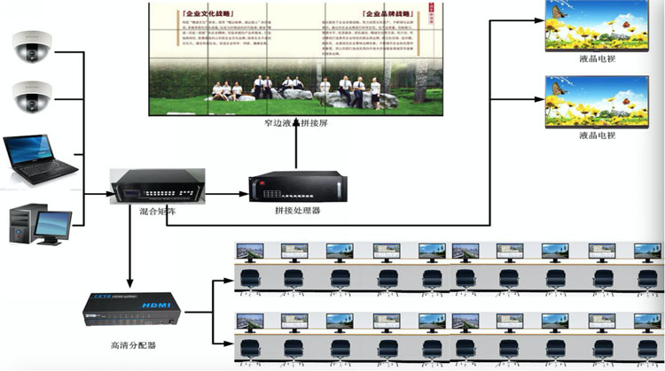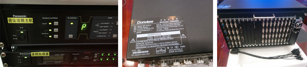 | 拼接大屏幕: 20 臺donview55寸3.5mm拼縫液晶拼接屏 數字會套: 1+20支松下嵌入式會議討論話筒 音視頻處理: 1臺松下DM304音頻處理器、1臺donview32進32出拼接控制器 |